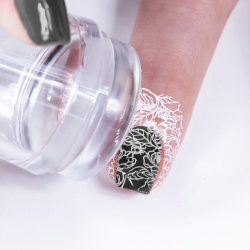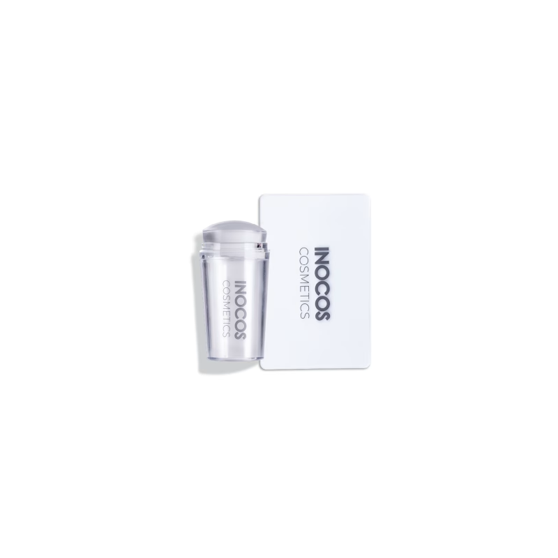 O CARIMBO E RASPADOR INOCOS – DETALHES PERFEITOS, em silicone transparente e raspador para arrastar facilmente o Stamping Gel sobre a Placa de Carimbos para unhas é ideal para pequenos detalhes.