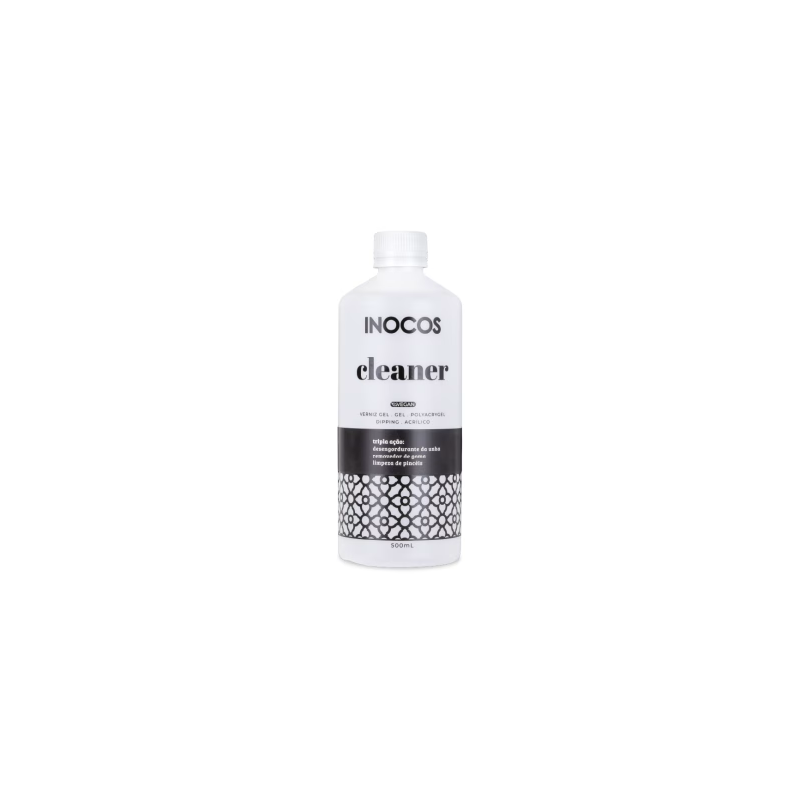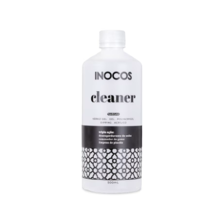 O Cleaner INOCOS 500ml limpa e desengordura a unha e remove a goma.