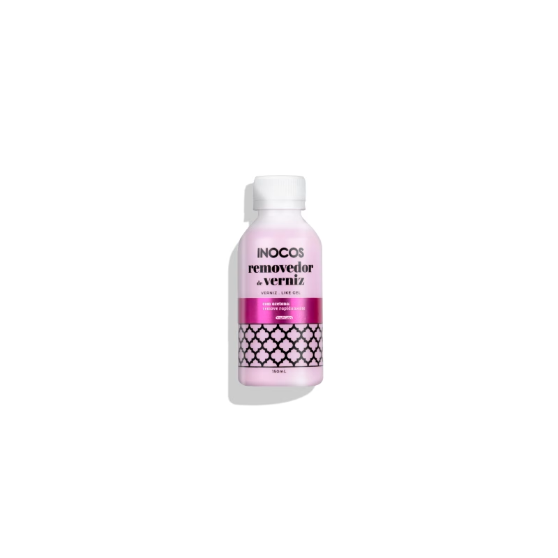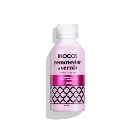 O Removedor de Verniz INOCOS 150ml com Acetona remove rapidamente o verniz das unhas.