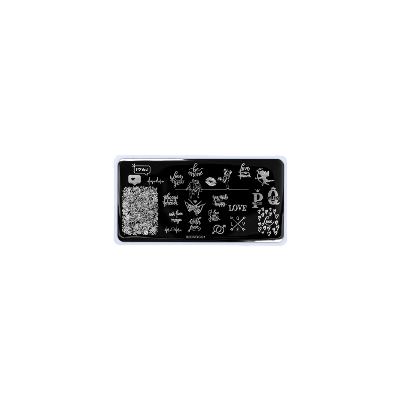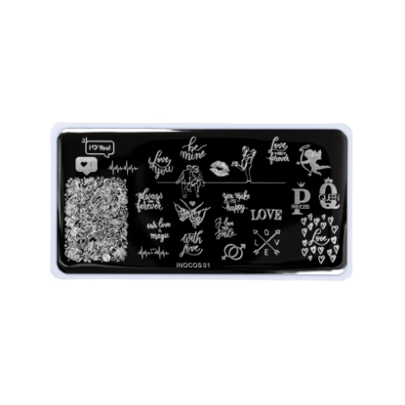 A Placa de Carimbo para Unhas Nº1 Love é uma placa em aço inoxidável com gravuras de pA Placa de Carimbo para Unhas Nº1 Love é uma placa em aço inoxidável com gravuras de padrões diversos para técnica Nail Art Stamping, neste caso, as figuras são dentro da temática “amor”.adrões diversos para técnica Nail Art Stamping, neste caso, as figuras são dentro da temática “amor”.