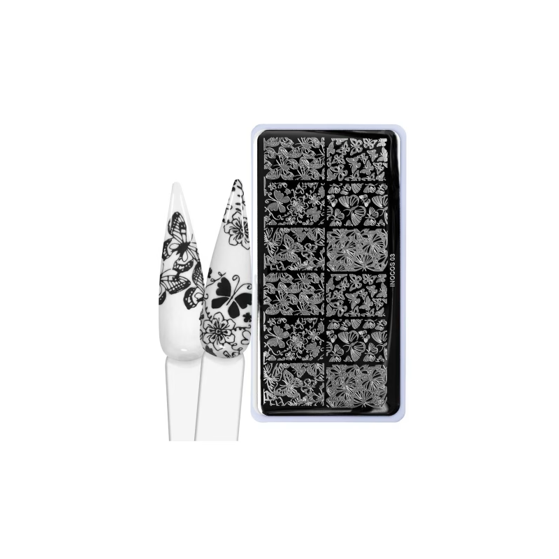 A Placa de Carimbo para Unhas Nº3 Butterfly é uma placa em aço inoxidável com diversas gravuras para técnica Nail Art Stamping.
