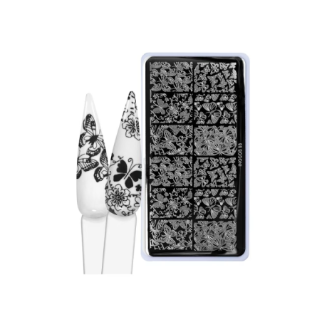 A Placa de Carimbo para Unhas Nº3 Butterfly é uma placa em aço inoxidável com diversas gravuras para técnica Nail Art Stamping.