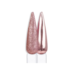 PÓ GLITTER MAGIA ROSA OURO de efeito 2 em 1, com efeito glitter e efeito cromado.