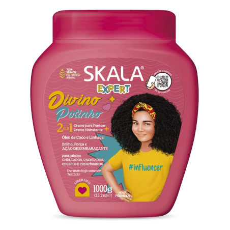 A linha Skala Kids foi desenvolvida para facilitar a rotina de cuidados com cabelos das crianças cacheadas e crespas principalmente na hora do desembaraço.