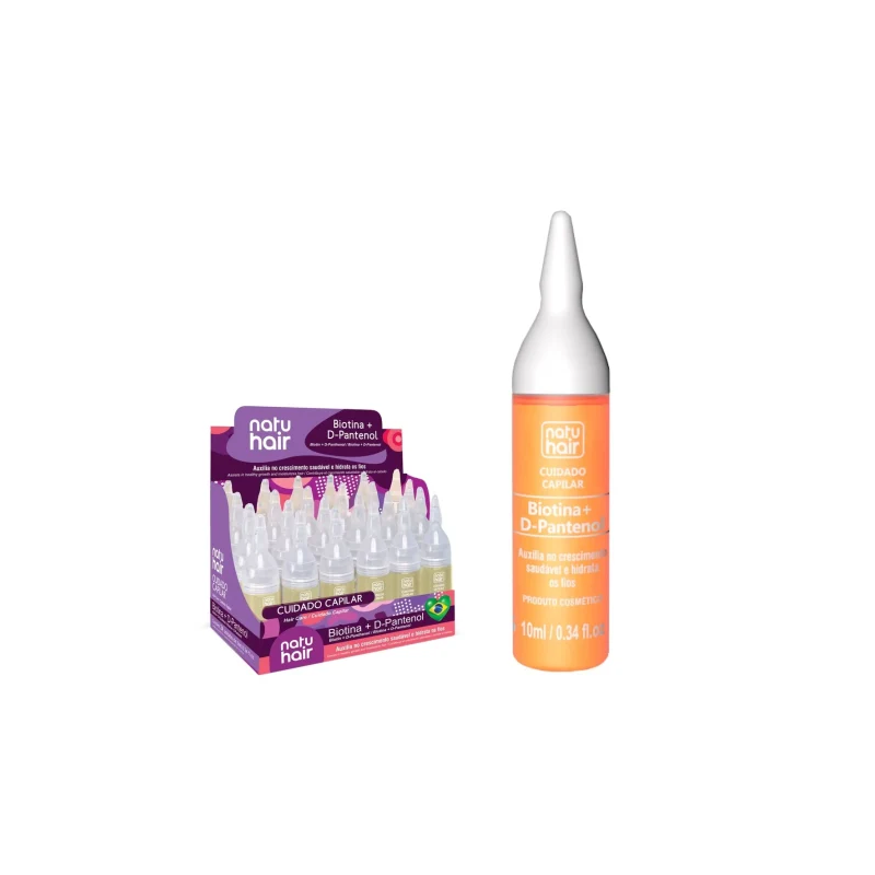 NatuHair cuidado capilar BIOTINA + D PANTENOL auxilia no crescimento saudável e hidrata os fios.