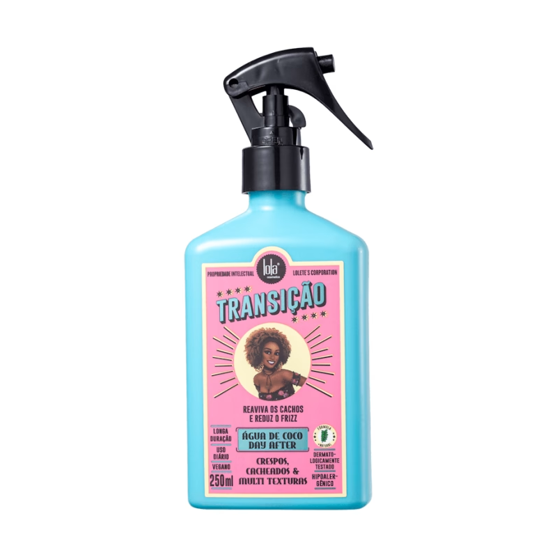 O Lola Cosmetics Transição Água de Coco Spray é ideal para cabelos em fase de transição. Hidrata, devolve a umidade, revitaliza os cachos, facilita a remodelagem e ajuda a reduzir o frizz. Contém um ativo patenteado que estimula o crescimento capilar, fortalecendo os fios e tornando-os mais resistentes.