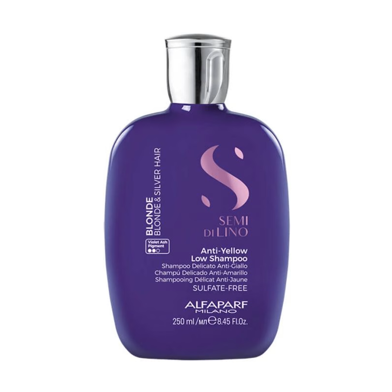 O Alfaparf Blonde Anti-Yellow Shampoo é um shampoo matizador com pigmentos violeta que neutraliza tons amarelados em cabelos loiros e brancos. Com proteção contra a luz azul, garante uma cor fria, brilhante e uma fibra capilar fortalecida.