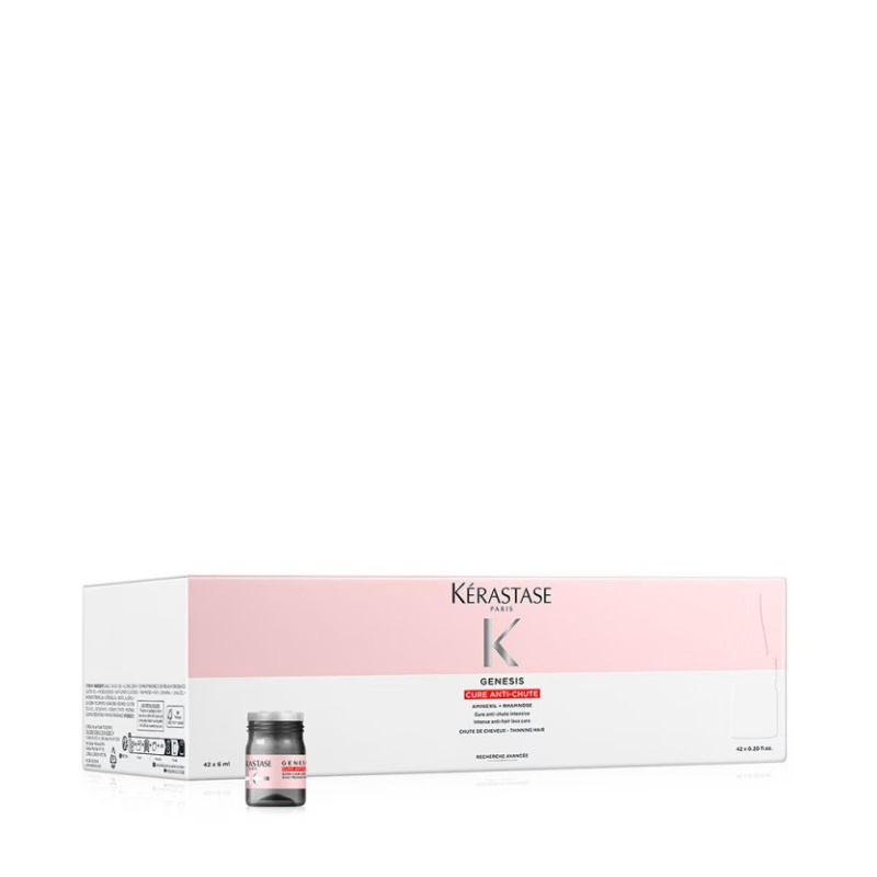 A Kérastase Genesis Ampoule Cure é um tratamento intensivo de 6 semanas que trava a queda de cabelo severa. Com Aminexil e Raiz de Gengibre, reforça a ancoragem da raiz e estimula o crescimento de fios mais fortes, densos e resistentes.