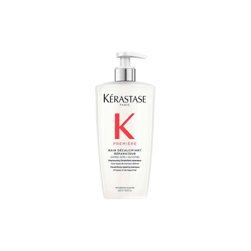 Kérastase Première Bain Décalcifiant Shampoo Reparador 500ml – Champô reparador descalcificante para cabelo danificado. Um champô de dupla ação que atua no interior e no exterior para eliminar o excesso de cálcio, fortalecer e reparar o cabelo danificado.