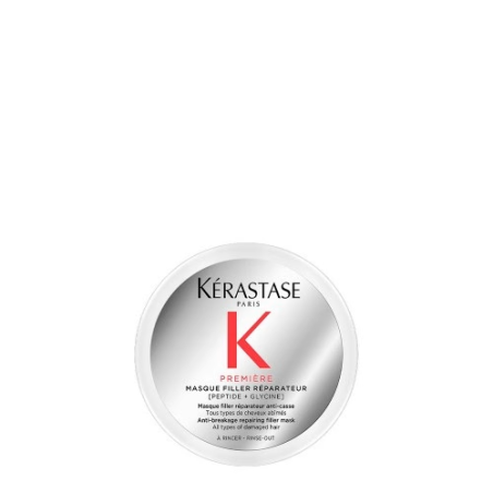 Kérastase Première Máscara Reparadora é um tratamento de preenchimento que remove o cálcio e reconstrói a fibra capilar danificada. Com ação antiquebra e descalcificante, devolve a força, a suavidade e o brilho intenso aos fios em formato de viagem.