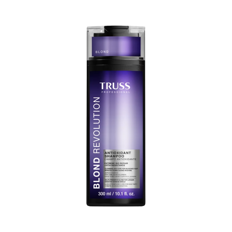 O TRUSS Blonde Revolution Shampoo 300ml é um shampoo desenvolvido para cabelos loiros, descolorados, com madeixas ou pintados, ideal para a manutenção da cor e para um loiro com aspeto mais luminoso e cuidado. Limpa suavemente sem pesar, ajudando a manter o cabelo com sensação de leveza, mais brilho e aparência saudável — perfeito para quem quer prolongar o efeito do salão no dia a dia.