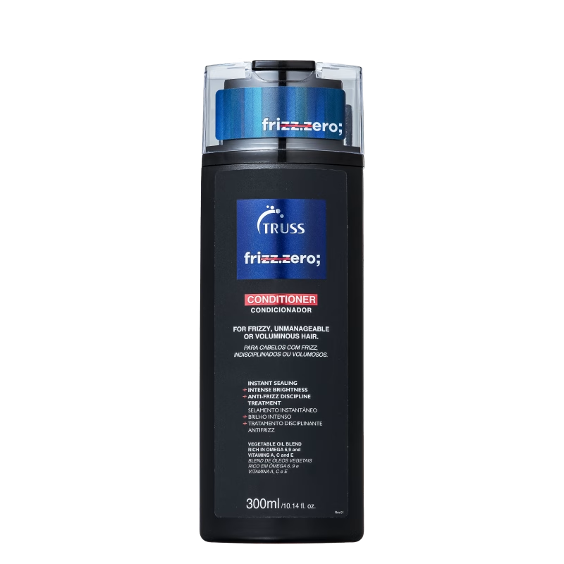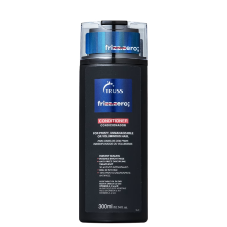 Após lavar com shampoo, aplicar no comprimento e pontas. Deixar atuar 2–3 minutos e enxaguar bem. Para melhores resultados, usar com o TRUSS Frizz Zero Shampoo e o tratamento da mesma linha.