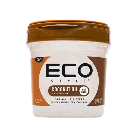 O Eco Style Coconut Oil Gel é feito com 100% de óleo de coco. O óleo de coco ajuda o couro cabeludo a regular naturalmente o seu sistema de hidratação.