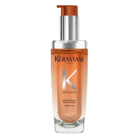 O Kérastase Oléo-Relax Recarregável é um óleo nutritivo para cabelos rebeldes e volumosos. Com o complexo Morpho-Huiles, controla o frizz, protege contra o calor até 230°C e confere um brilho extraordinário, agora num formato recarregável e sustentável.